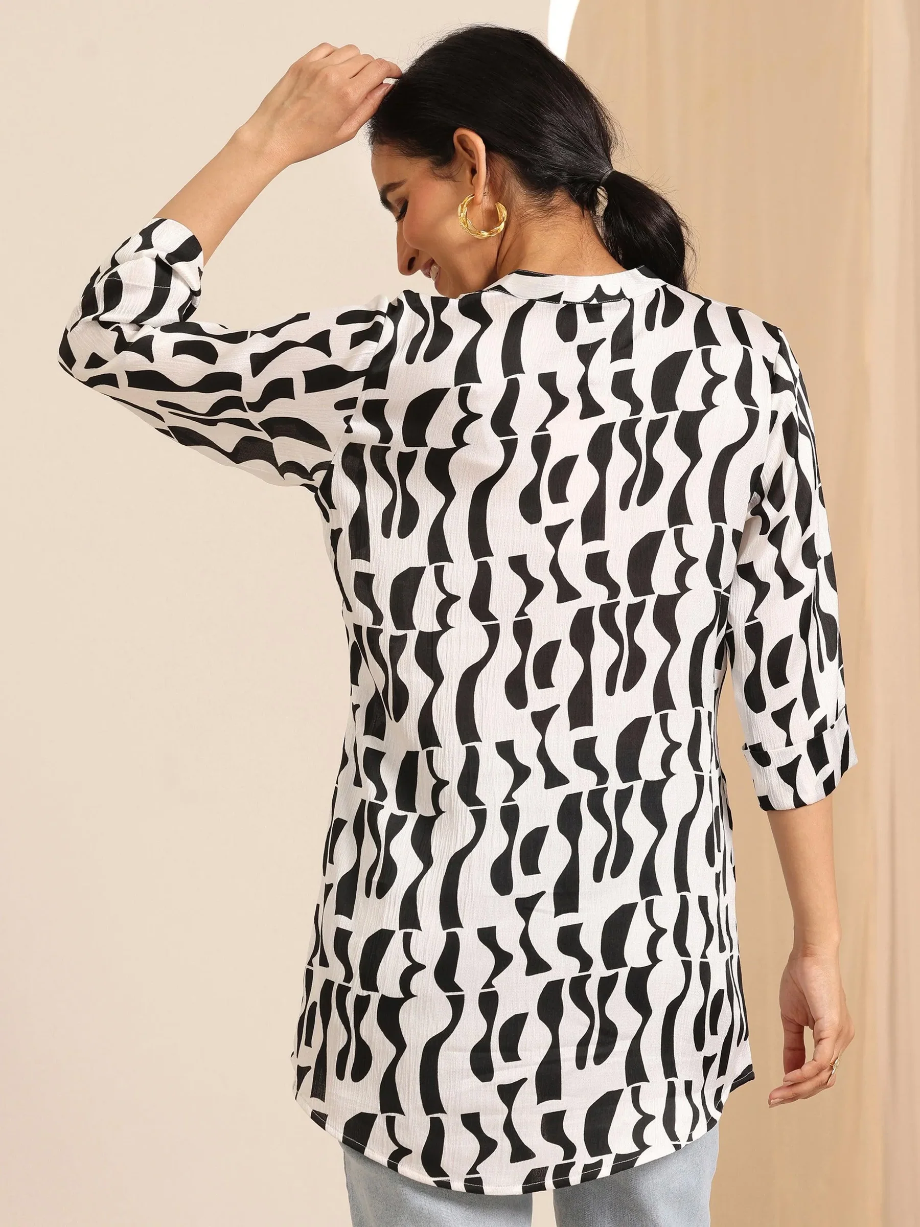 White Printed Silk Blend Straight Tunic